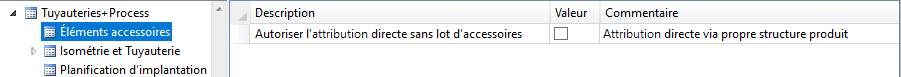 - Modifiez, si nécessaire, les Paramètres de Tuyauteries+Process pour les éléments accessoires