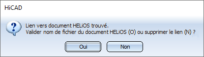 - Répondez à la question par Oui. Le dessin se retrouve alors de nouveau attribué aux données de fiche de la base de données. De même, par Oui, le dessin sera déplacé automatiquement dans le chemin logique C: du fichier système FILEGRUP.DAT. Il s'agit par défaut du répertoire HiCAD > sous-répertoire SZENEN.