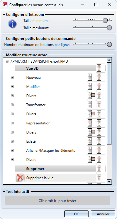 En quittant la fenêtre de dialogue par OK, les paramètres choisis seront appliqués au menu contextuel.
