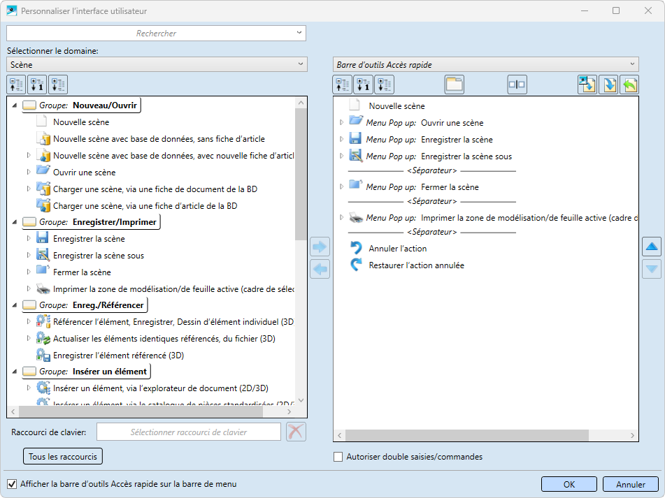 Interface utilisateur • Barre d'outils • Personnalisation des raccourcis clavier • Barre d'outils Accès rapide
