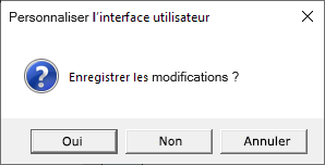 En cliquant sur Oui, vous enregistrez les modifications, avec Non vous les refusez. Avec Annuler, le message est fermé et vous retournez à la fenêtre de dialogue Personnaliser l'interface utilisateur.