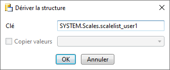 Il est possible de dériver des listes d'échelles personnalisées à partir des listes d'échelles ISD. Cliquez pour cela avec le bouton droit de la souris sur la liste d'échelles correspondante, par exemple Échelles standards, métriques, puis sélectionnez la fonction Dériver la structure.