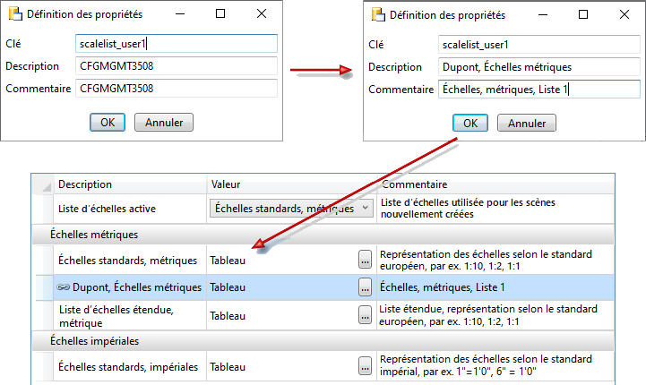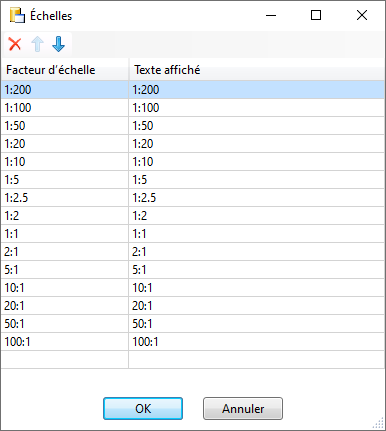 Pour modifier une liste d'échelles, c'est-à-dire pour ajouter de nouvelles échelles, supprimer des échelles ou apporter des modifications à une échelle, cliquez sur le symbole
