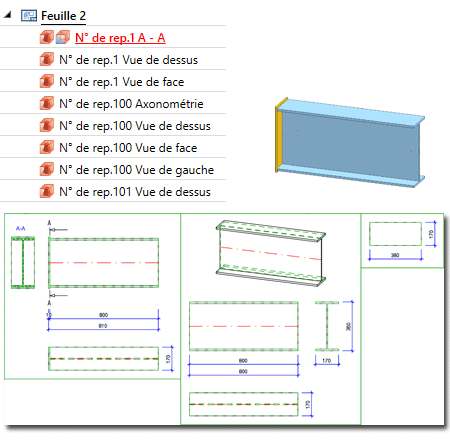 Pour chaque groupe de vues, une nouvelle vue de feuille sera créée. Il est ainsi possible de modifier les éléments individuels et les ensembles de soudure dans des zones de feuille uniques et différenciées. - Une nouvelle feuille par cadre de dessin