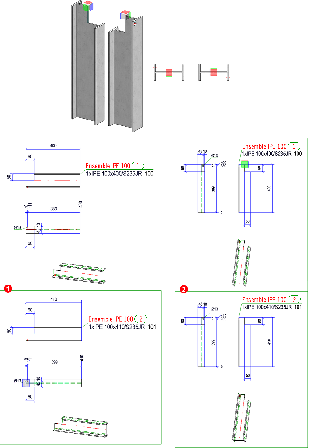 Si cette case est cochée, un dessin d'élément individuel propre sera alors créé pour chaque élément secondaire. Cela vaut également pour les éléments de la Structure métallique qui sont des éléments secondaires d'un élément autre que de Structure métallique.