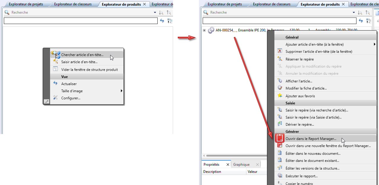 Cliquez ensuite avec le bouton droit de la souris sur l'ensemble principal et ouvrez la nomenclature dans le Report Manager.