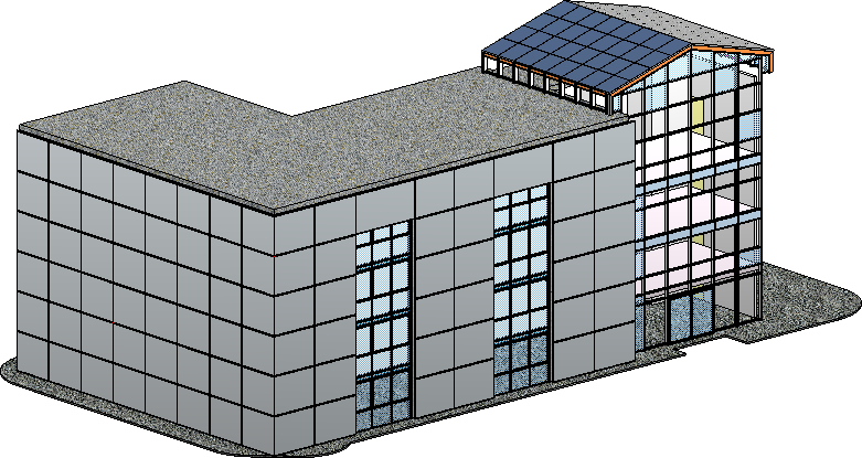 - pour la surface du toit (3) avec des plaques ALUCOBOND collées.