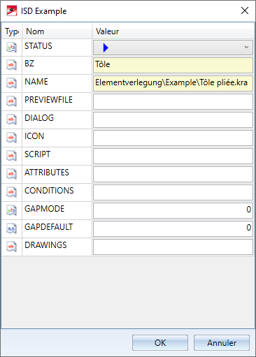 Si la case Démarrer l'Éditeur de dialogue est cochée, l'Éditeur de dialogue HiCAD s'ouvrira alors automatiquement en quittant la fenêtre par OK et le fichier CSV avec la variable y sera chargé automatiquement. Vous pouvez donc commencer de suite avec la création de la fenêtre de dialogue. Au moment d'enregistrer la fenêtre de dialogue, l'archive ISDGUI sera stockée automatiquement dans le même dossier que le fichier CSV.