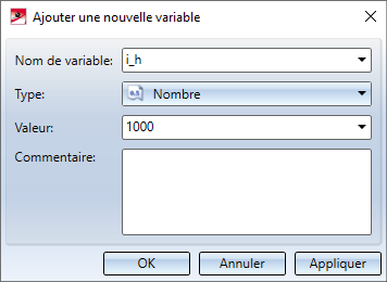 - Cliquez sur le bouton Ajouter une nouvelle variable et créez une variable au nom de i_h, Type Nombre, Valeur