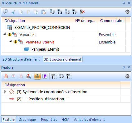 - Cliquez dans l'ICN sur l'ensemble Panneau-Eternit avec le bouton droit de la souris et sélectionnez dans le menu la fonction Propriétés > Variables d'élément.