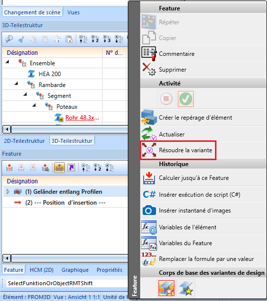 Pour commencer, il faut d'abord exécuter la fonction Résoudre la variante pour l'ensemble de la rambarde.