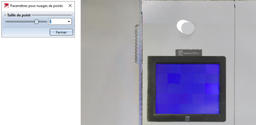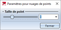 Grâce à cette fonction, vous pouvez augmenter ou réduire la taille des points d’un nuage de points. Elle peut donc s’avérer utile lorsque vous zoomez sur un nuage de points et que vous souhaitez conserver une image aussi complète et détaillée que possible.