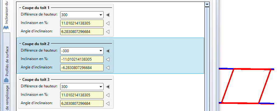 Vous pouvez maintenant définir l'inclinaison de ces surfaces de trois façons différentes :