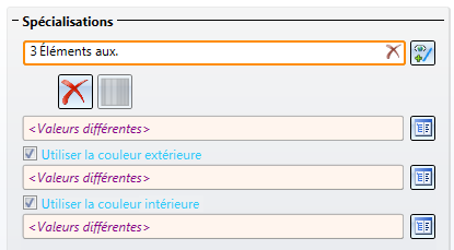 Si les mêmes paramètres s'appliquent à tous les panneaux sélectionnés, ils sont affichés dans la fenêtre de dialogue. Si les paramètres diffèrent, le texte <Valeurs différentes> s'affiche à la place d'une valeur dans le champ de saisie correspondant.