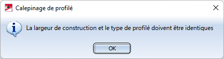 le profilé qui remplacera les profilés sélectionnés, ainsi que définir la couleur extérieure/la couleur intérieure (en fonction du type de profilé). Lors de la sélection du profilé, veillez à ce que la largeur de construction et le type du nouveau profilé correspondent à ceux des profilés sélectionnés. Dans le cas contraire, un message correspondant sera affiché.