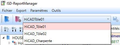 Le chargement des fichiers de configuration n'est possible que si des données sont affichées dans le Report Manager, que ce soit après le chargement d'un fichier RM3 ou après le transfert de données à partir de HiCAD.