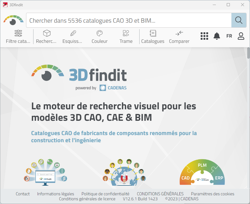 3Dfindit de la société Cadenas est un moteur de recherche visuel pour les modélisations 3D CAO, CAE (IAO) et BIM. Vous avez ici accès aux catalogues CAO de fabricants de composants renommés pour la construction et l'ingénierie.