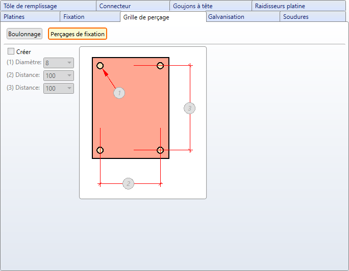 Les platines d'ancrage et de soudure ne seront créées que si dans chacun des onglets cette case est cochée. |