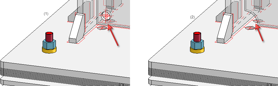 Si la case Insérer est cochée, la fixation s'effectue au moyen d'un boulonnage fraisé par en dessous dans la platine de soudure, c'est-à-dire qu'ici seules les platines de soudures et de base seront vissées ensemble. Déterminez par un clic sur le symbole