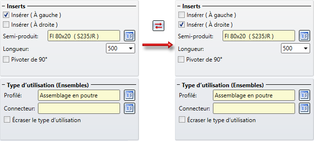 En cochant cette case, vous déterminez si le raidisseur en question devra être inséré.