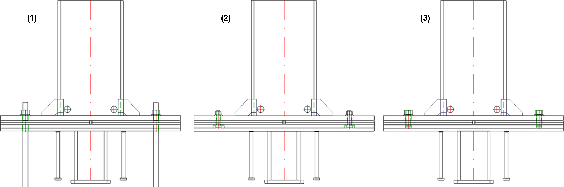 Il est également possible d'effectuer la fixation au moyen de goujons filetés ou au moyen d'un boulonnage fraisé par en dessous dans la platine de soudure.