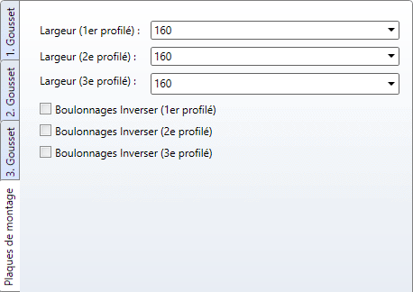 Dans les autres onglets verticaux, vous déterminez la géométrie et la grille de perçage des goussets.