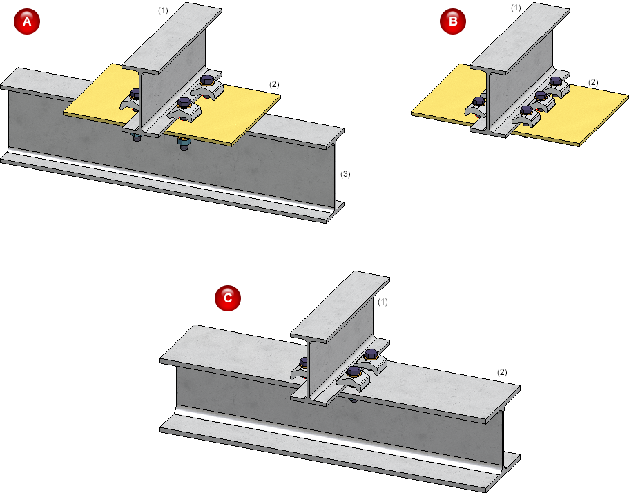 Les plaques de fixation (ou crapauds) entrent en action lorsque des pièces ne devront être ni vissées ni soudées directement les unes aux autres. Les connexions suivantes sont disponibles :