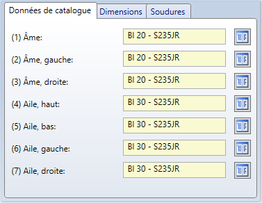 En cliquant sur le symbole , vous pouvez sélectionner directement l'âme et les ailes avec leur matériau dans les catalogues de pièces standardisées correspondants. Vous avez le choix entre les catalogues suivants :