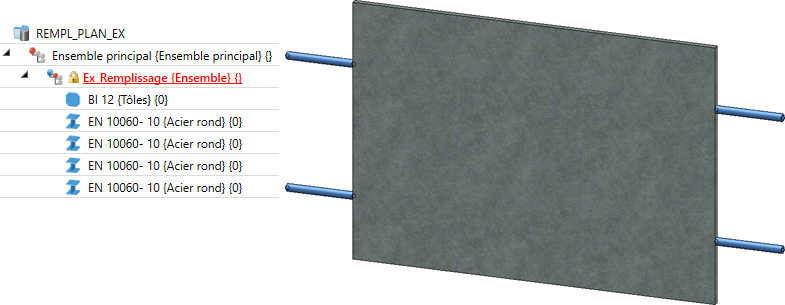 - Nous modifions encore le nom de l'élément (dans les propriétés de l'ICN) et le Numéro ID (Attributs d'élément) de l'ensemble en Ex_Remplissage.